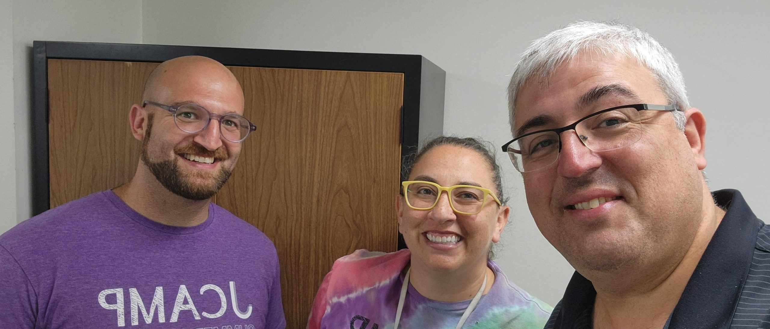 From the left: Dan Chomstein, assistant director of camp and family programs, JCamp at JLA; Edana Appel, director of camp and family programs, JCamp at JLA; and Uria Roth And Dan Chomstein: Assistant director of camp and family programs. (JCAMP at JLA).