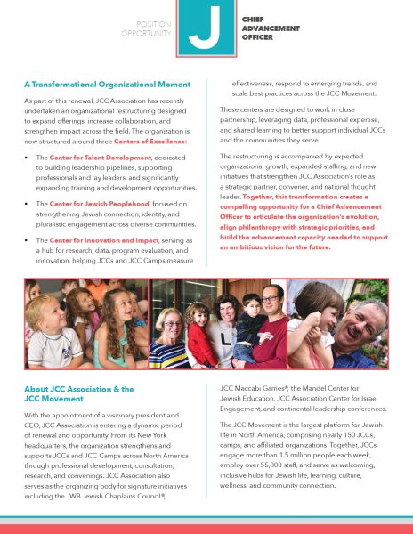 We lead and connect the JCC Movement, advancing and enriching North American Jewish life.