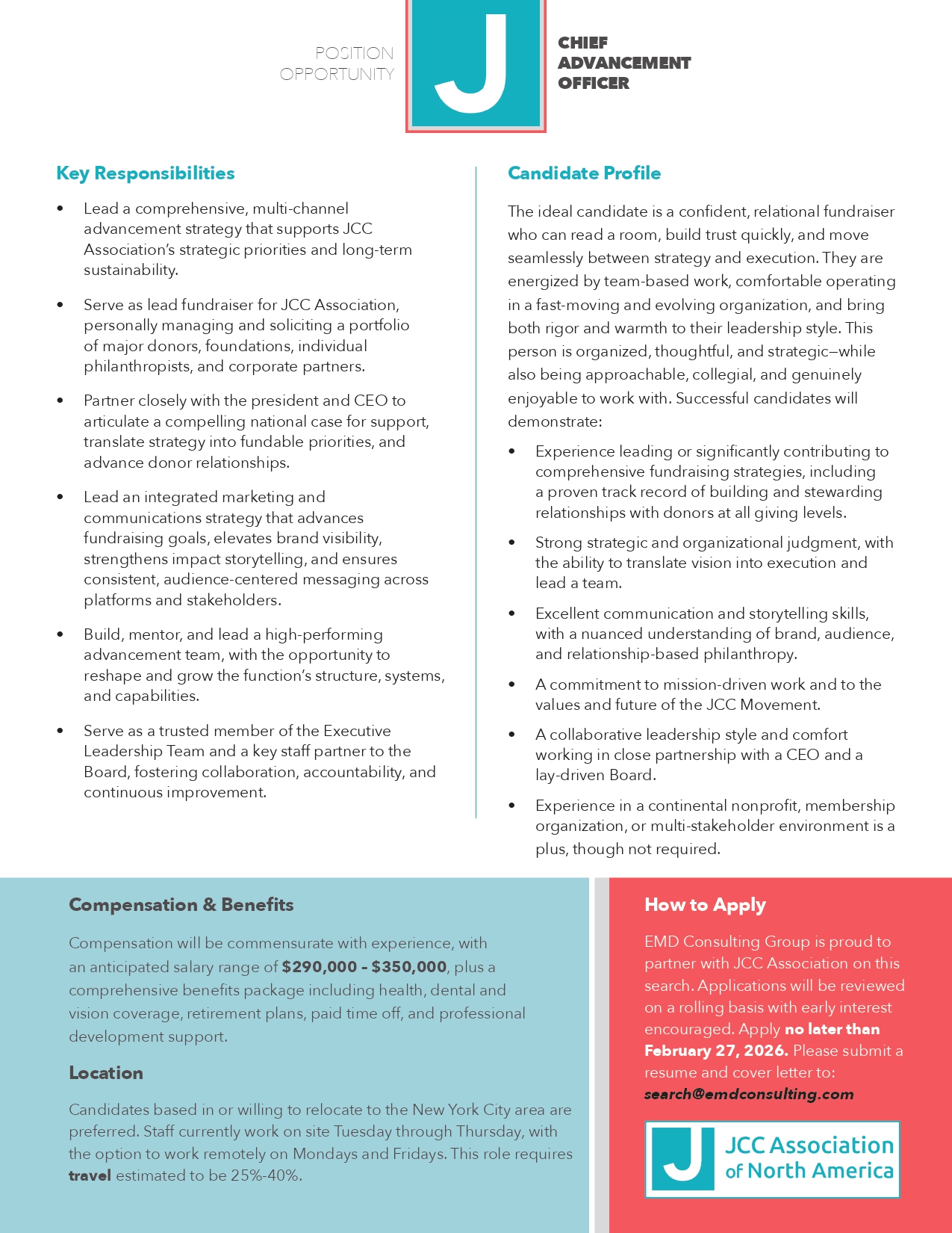We lead and connect the JCC Movement, advancing and enriching North American Jewish life.